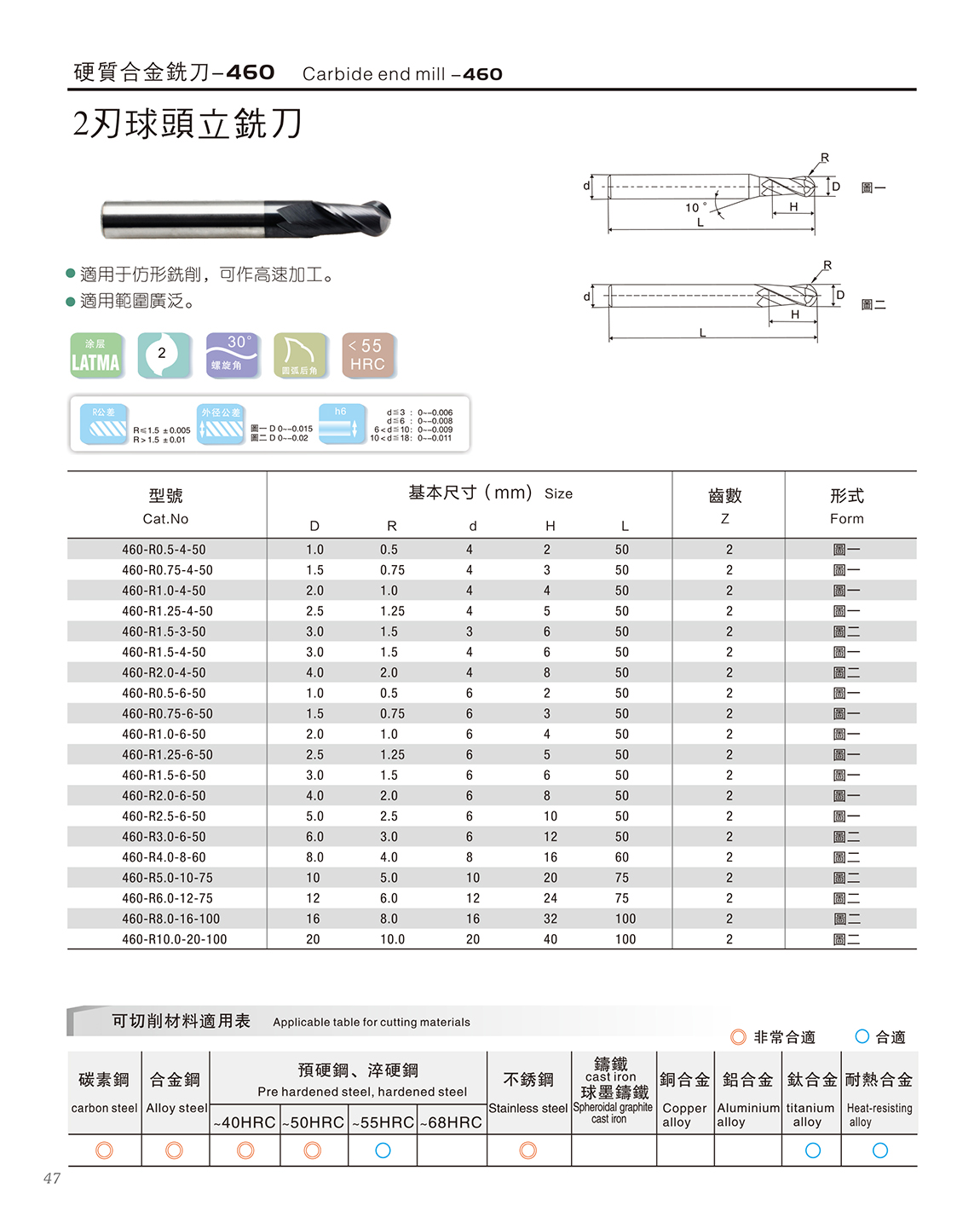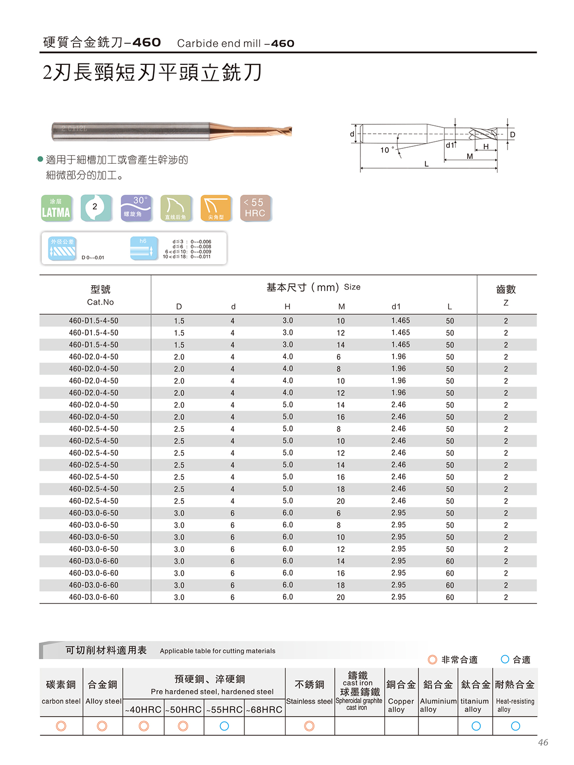 1.OUSA KENNAMETALISO-Range K25 2.加工硬度HRC55度之内,具有极高的耐磨性和强度,良好的涂层结合性 3.应用范围:不锈钢、合金、镁合金 4.应用工况:精加工,半精加工,高速铣 库存:标准刀、圆鼻刀、小径刀、深沟刀