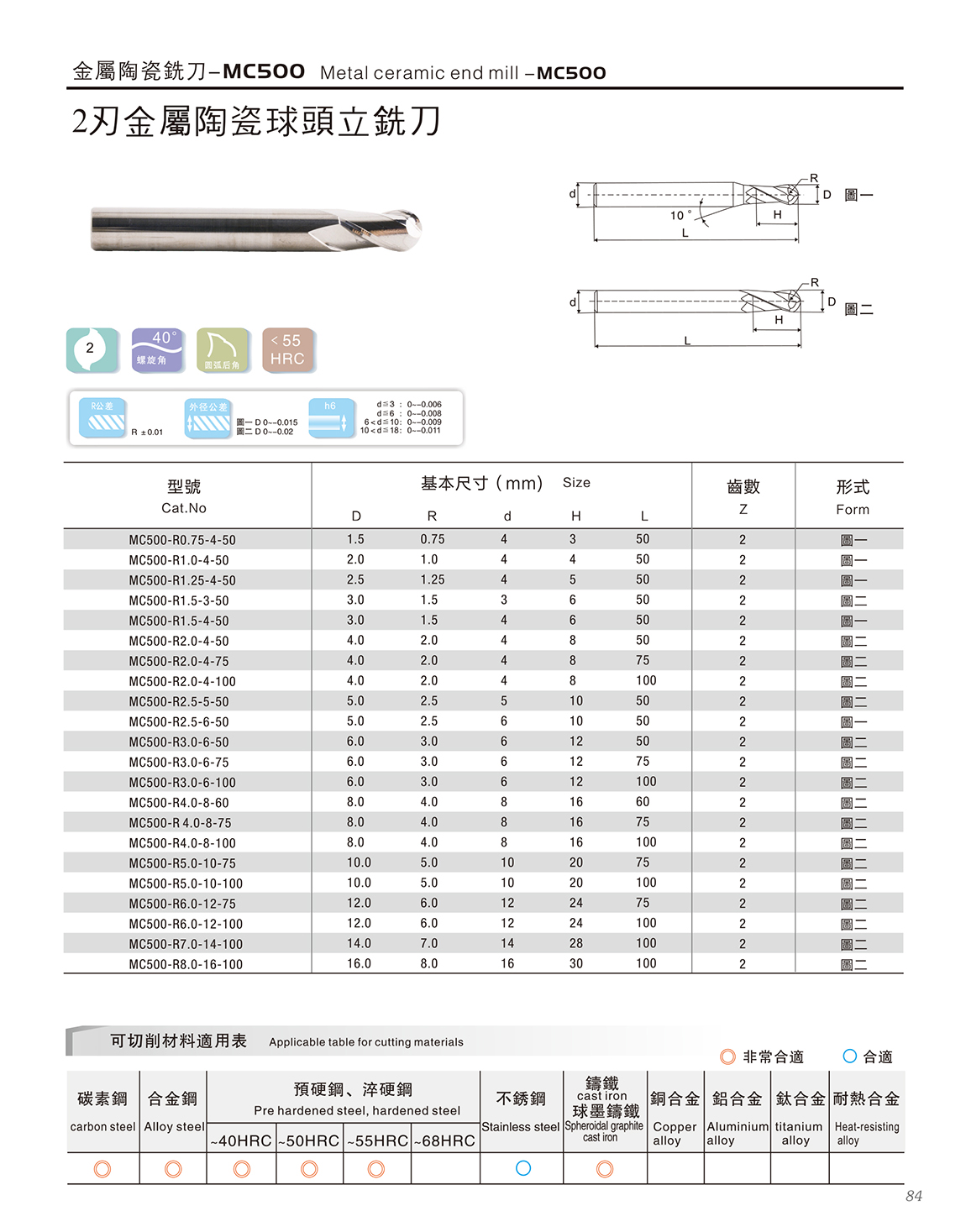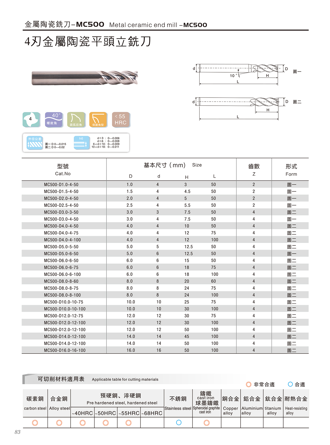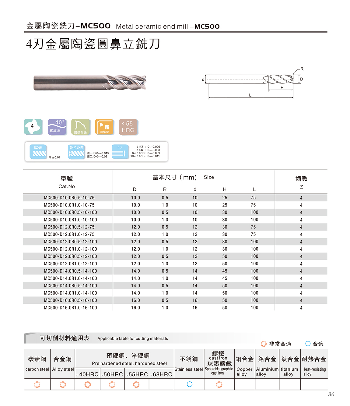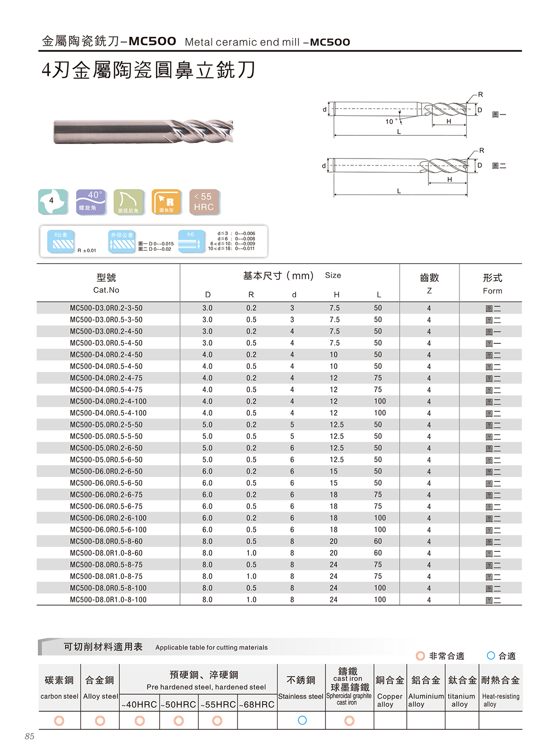 MC500金属陶瓷立铣刀